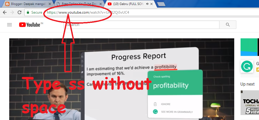Step-2.ऊपर लिंक बार में youtube नाम के पीछे ss लगा दें और सर्च करें ।