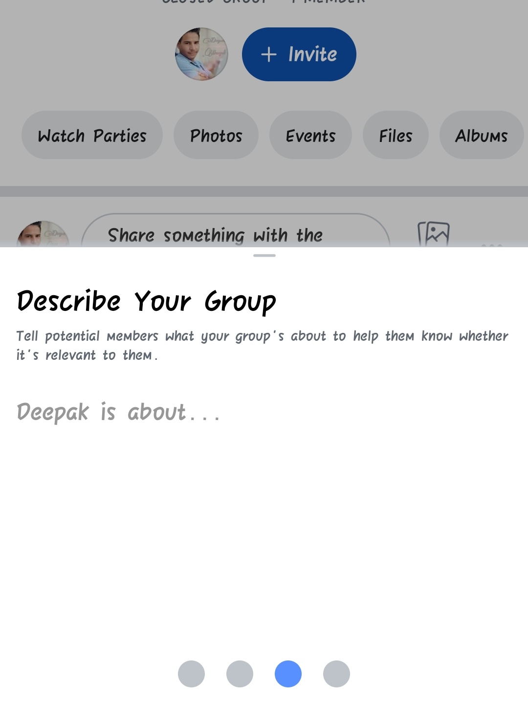 दोस्तों इतने स्टेप्स करने के बाद आपका ग्रुप पोस्ट डालने के लिए रेडी है अब आपको बस अपने ग्रुप की प्रोफाइल पिक्चर कवर फोटो लगानी है और आप अपने दोस्तों को भी इनवाइट कर सकते हैं,