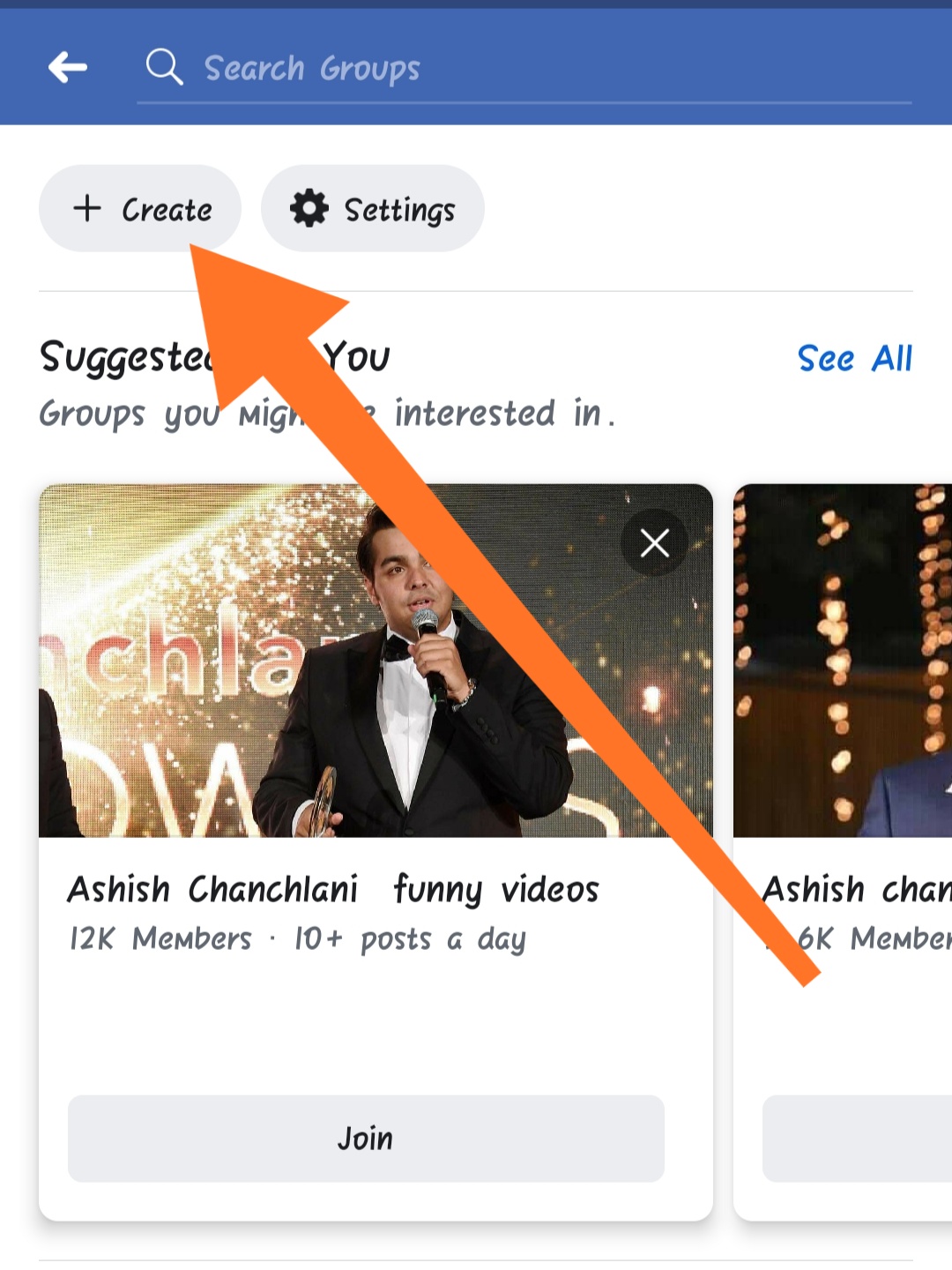 दोस्तों इसके बाद आपके सामने आपने जितने भी ग्रुप ज्वाइन किए हैं वे सभी आ जाएंगे और आपको ऊपर राइट साइड में कोने में क्रिएट ग्रुप का ऑप्शन मिल जाएगा, आपको क्रिएट ग्रुप पर क्लिक करना है जैसा कि स्क्रीनशॉट में दिखाया गया है।