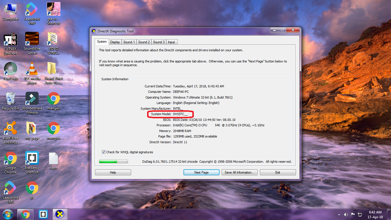 अब आपके सामने नीचे स्क्रीनशॉट में दिखाया अनुसार टैब ओपन हो जाएगा इससे पहले आपके सामने कुछ और टाइप आएंगे जिससे आपको नेट कनेक्ट करते रहना है आपको सिर्फ 20 सेकेंड का वक्त ही लगेगा इस टाइम तक पहुंचने में जब आप एक बार इस टाइप तक पहुंच जाएंगे तो आपके सामने कंप्यूटर के स्पेसिफिकेशन आ जाएगी इसके अंदर से आपको सिस्टम मॉडल के आगे जो मॉडल लिखा होगा उसे कॉपी कर लेना है जो की स्क्रीनशॉट के अंदर दिखाया जा रहा है अगर जहां आप सेलेक्ट नहीं कर पा रहे हैं तो यहां जो भी संख्या दिखाई गई है उसे अलग नोटपैड में टाइप कर लीजिए।