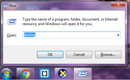 Start+R प्रेस करते ही आपके सामने कमांड रन का ऑप्शन आ जाएगा इसके अंदर आपको dxdiag लिखना है और इंटरफ़ेस कर देना है।